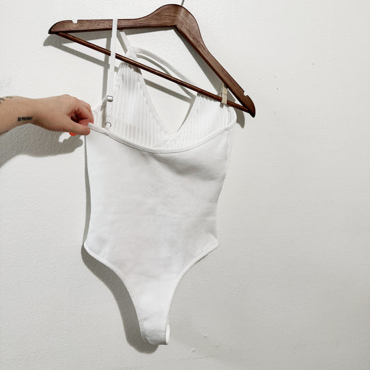 Small | Lulus White ribbed one shoulder bodysuit